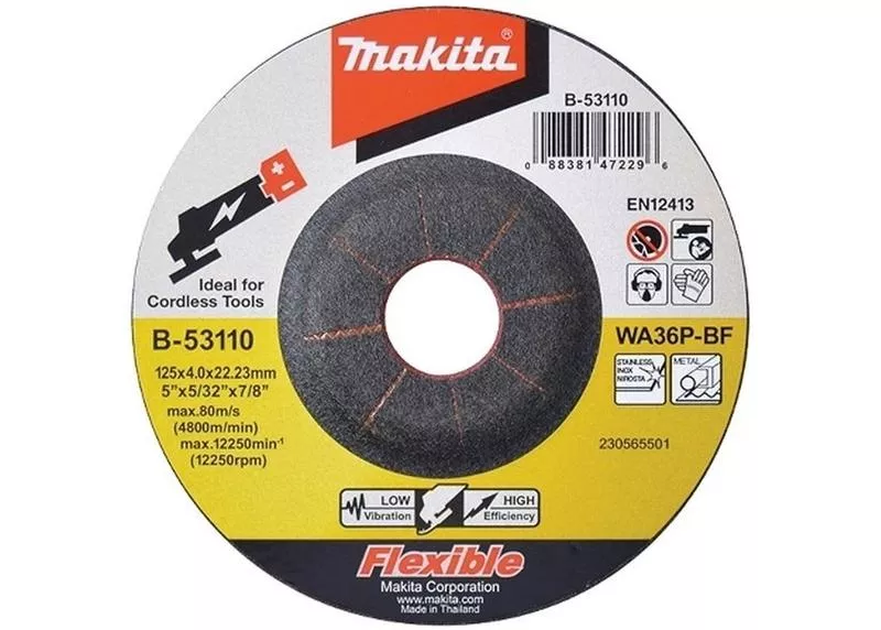 Brúsne kotúče Makita sú stredne tvrdé univerzálne kotúče, určené pre všetky oblasti opracúvania kovov. Brúsne kotúče majú hrubú zrnitosť a používajú sa na miestach, kde sa požaduje vysoký úberový výkon. Vzhľad výbrusu je zodpovedajúco hrubý.